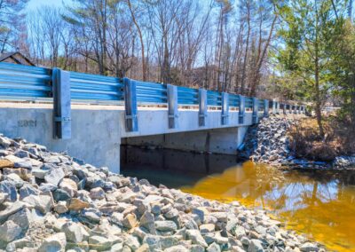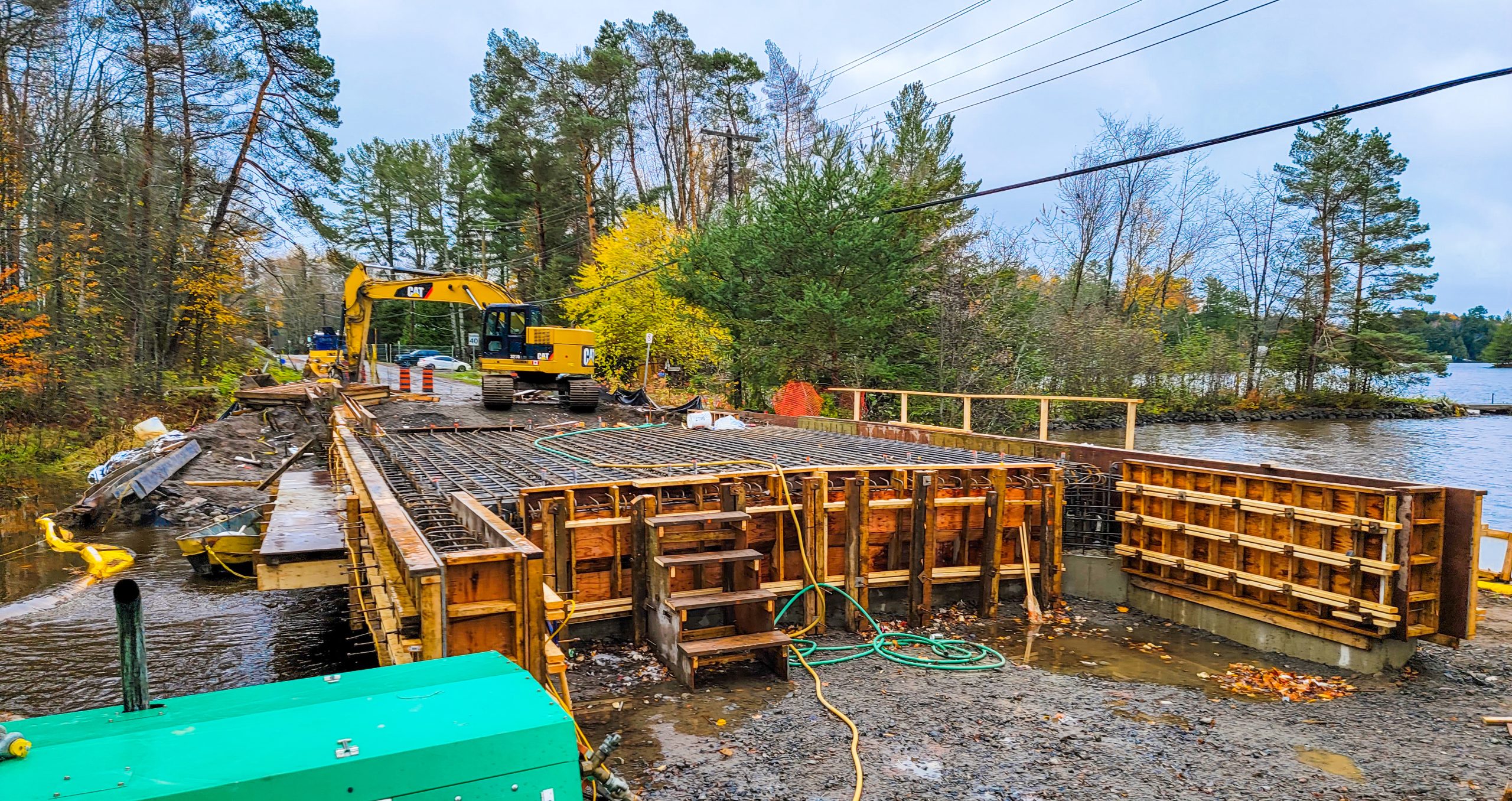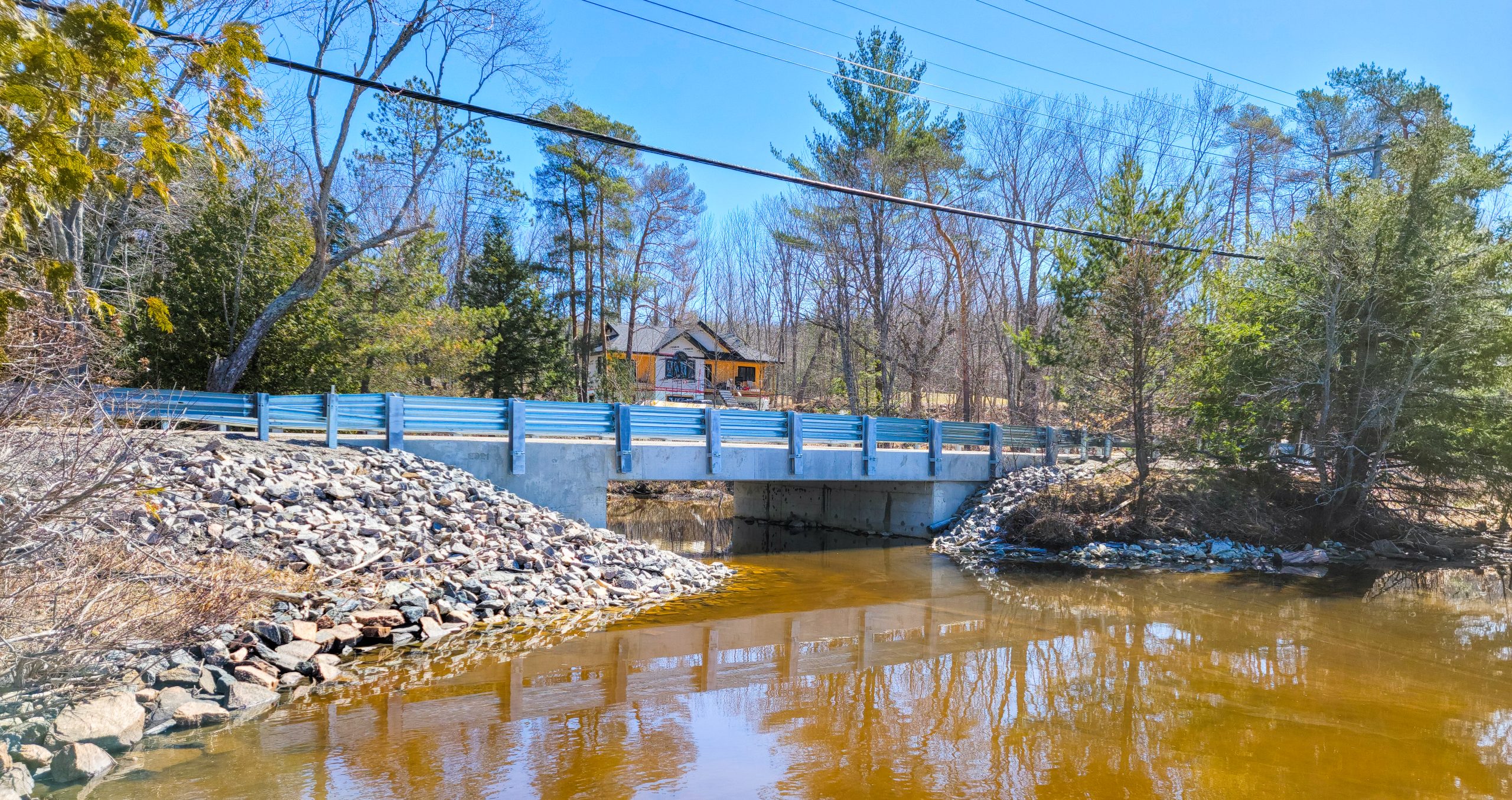 Working closely with the Township of Muskoka Lakes, our Bridges team was able to identify this replacement as the most suitable solution. Due to extremely poor soil conditions in the area, a previously preferred solution of replacing the existing bridge with multiple culverts was found to have a significant risk of settlement during the preliminary design and geotechnical review.